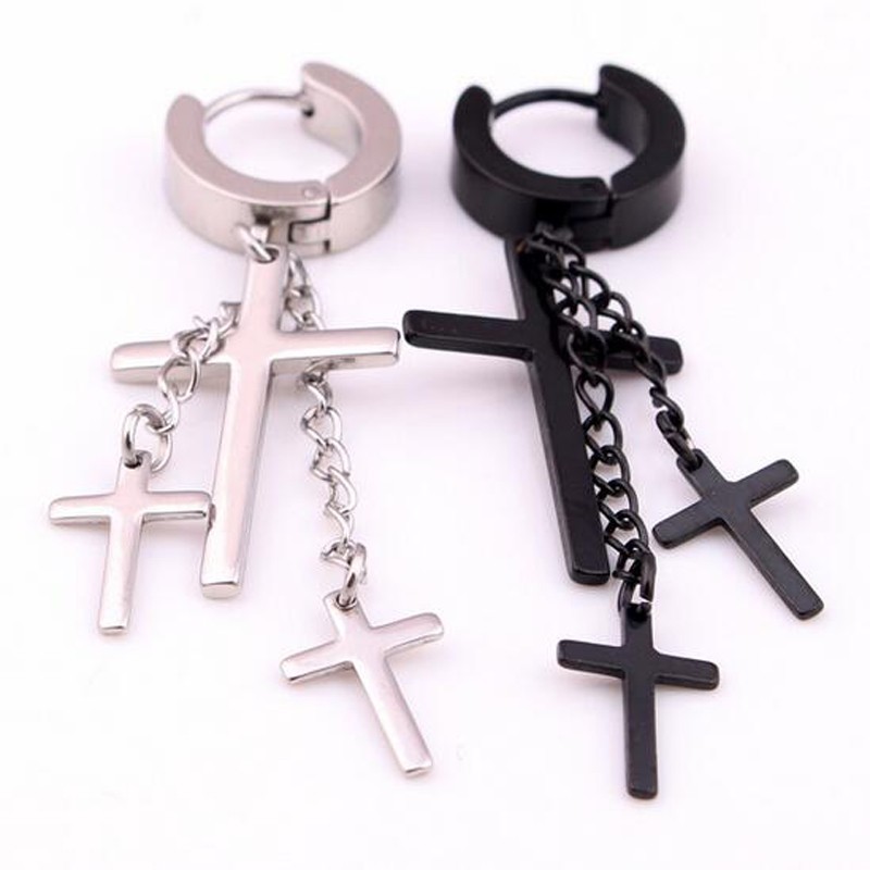 Do you like crosses? These men's earrings with three crosses are a great fashion accessory.