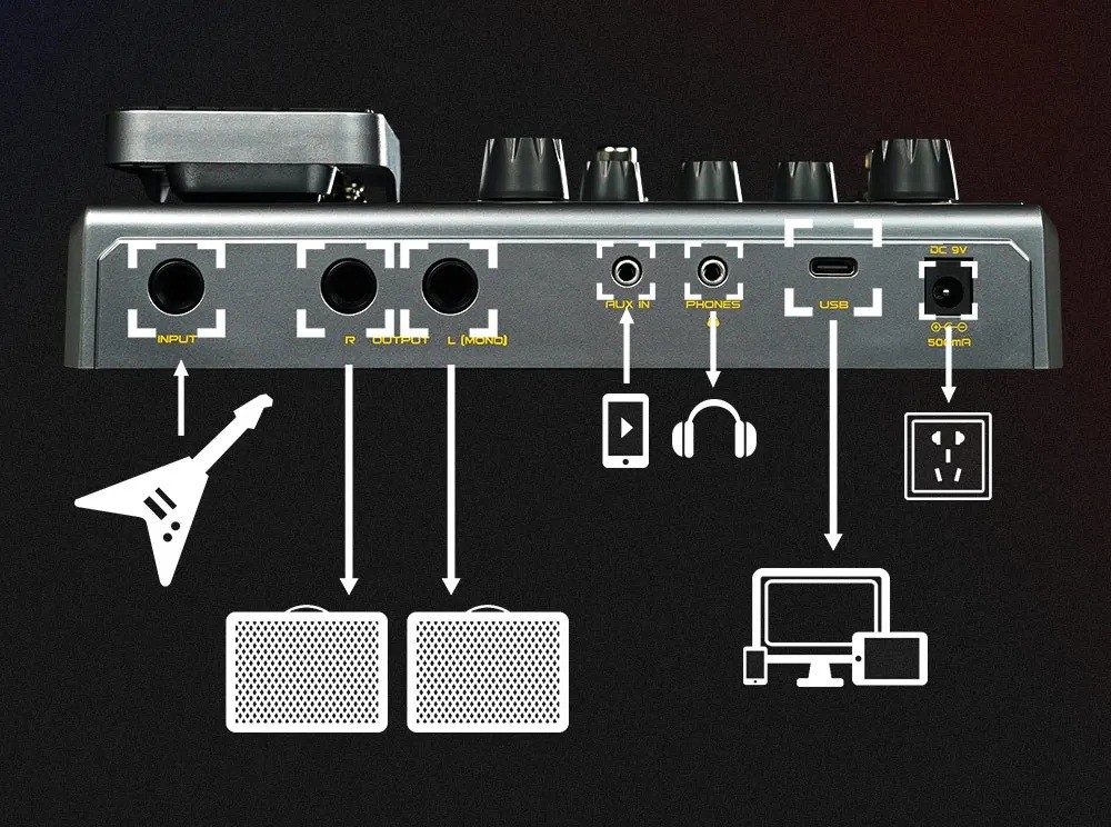 - Option to connect electric, bass, and acoustic guitar