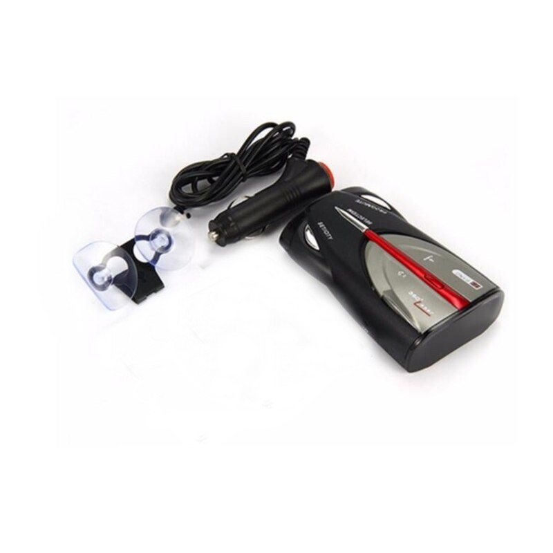 Package contents: 1x radar detector, 1x 12V car charger, 1x suction cup holder