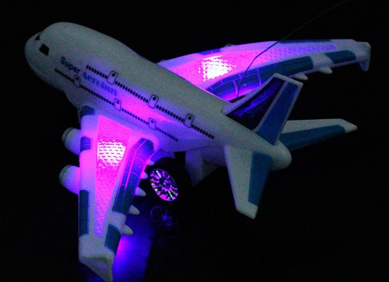 LED lights beautifully illuminate the aeroplane.