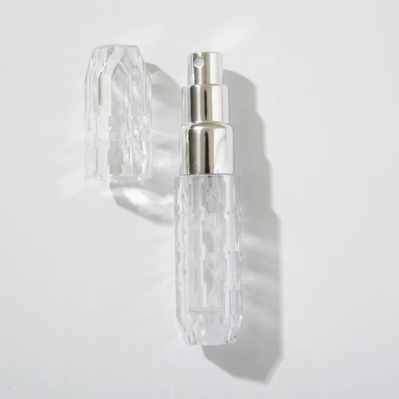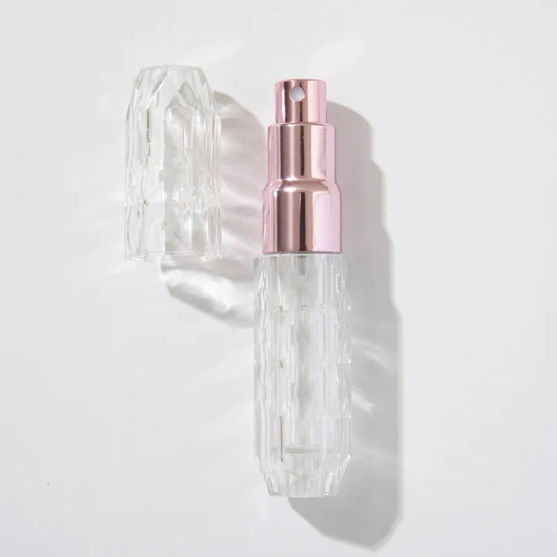 Small 5 ml perfume atomiser in a transparent design. Lightweight and compact spray suitable for travel and everyday use. Full description