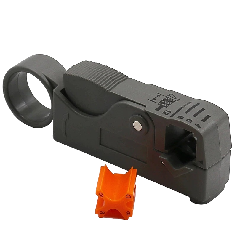 The rotary cable stripper fits easily into your pocket or tool case thanks to its dimensions of 9.8 x 3.2 x 1.8 cm. This product allows you to adjust the blade to the correct diameter of the cable. It ensures you always achieve a perfectly precise cut.
