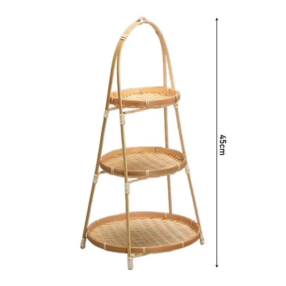 Round Bamboo Woven Basket 45 cm Three-Tier Food Storage Basket Multifunctional Organiser for Kitchen and Home