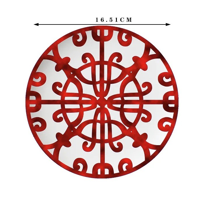 The main feature of this plate is the striking radial symmetrical ornamental motif, which is arranged around the centre in a regular circular pattern. This design creates an interesting visual effect and gives the plate a decorative character. The ornamental lines are evenly distributed, which appears harmonious and clear when serving food.