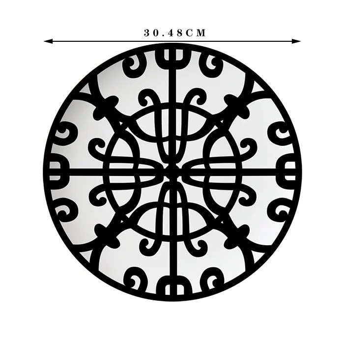 Round Flat Ceramic Plate with Radial Symmetrical Ornamental Motif 30.48 cm Large Plate for Serving Dishes
