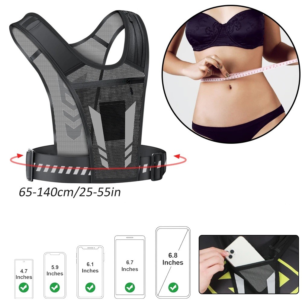 Running Vest with Phone Pocket and Reflective Elements for Men and Women Suitable for Jogging, Walking and Training