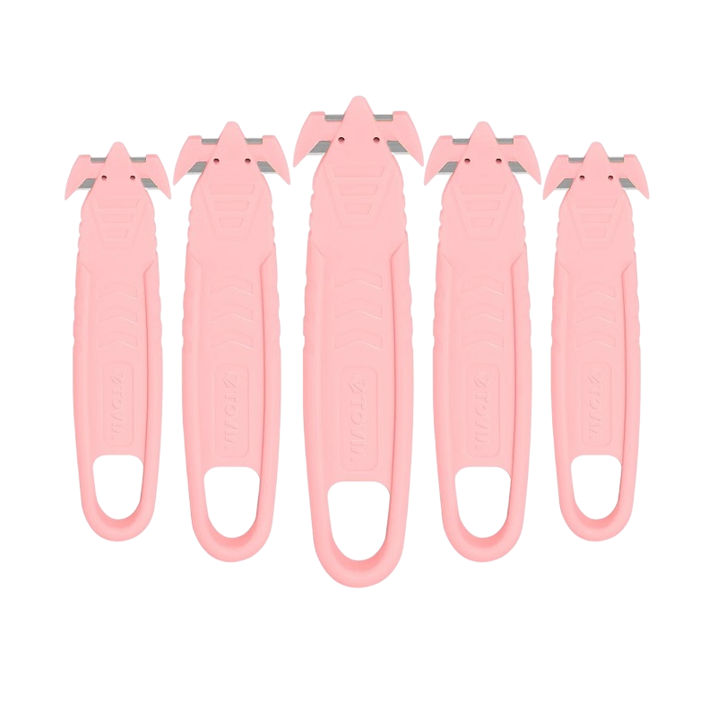 Safety knives are an essential tool for anyone who works daily with packages, cardboard, or film. This set includes 5 compact cutters measuring 14 cm, which feature a folding and partially covered blade – significantly reducing the risk of injury. The ergonomic plastic handle ensures a firm grip and comfortable handling during repeated use. Thanks to its lightweight construction and simple folding mechanism, it is suitable not only for professional use in warehouses and post offices but also for homes and offices. The knives easily and effectively cut through adhesive tapes, cardboard, packaging, plastic envelopes, and stretch film.