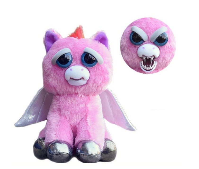 The plush toy is cute, but just touch its head and it immediately transforms into a scary creature that frightens everyone.