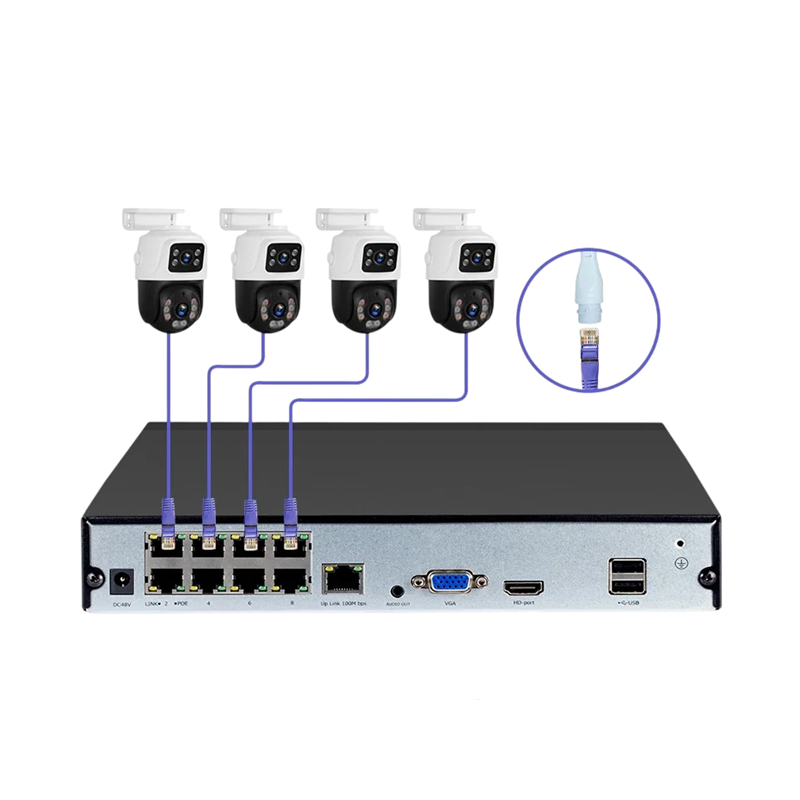 The set includes 6 security cameras, which can be placed in various locations as needed. By installing multiple cameras, it is possible to monitor several areas at once and gain a better overview of the monitored space. The cameras can be mounted on a wall or other solid surface using a mounting bracket.