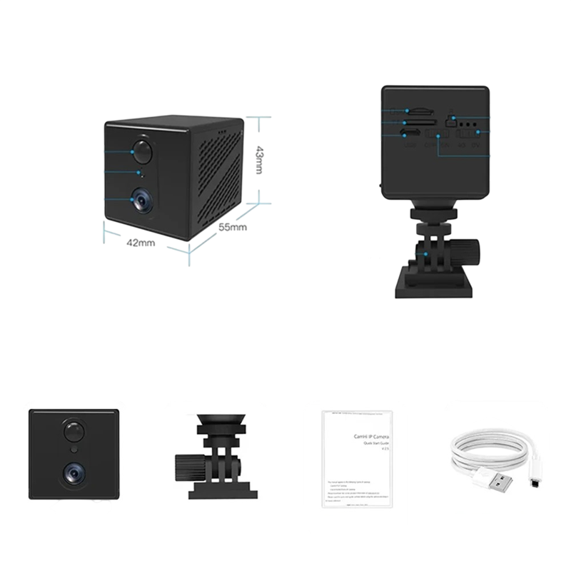 The plastic construction is compact and allows for easy placement on various surfaces. The black finish is unobtrusive and fits into different types of environments. The camera is suitable for use in homes, offices, and smaller operations.