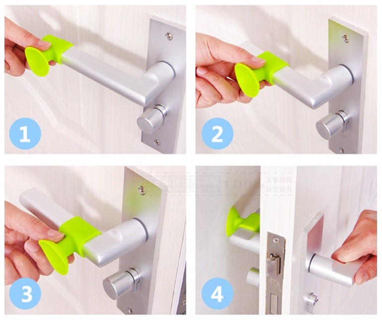 Attachment to door fittings and, with the suction cup, securing the door against closing variant 4. Suitable for bathrooms.