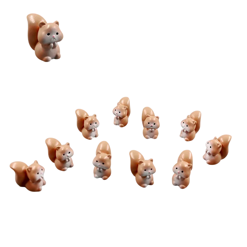 Set of 10 Mini Squirrel Figurines 1.5 × 1.6 cm Resin Decoration for Mini Garden, Pot, Aquarium or Creative Crafting