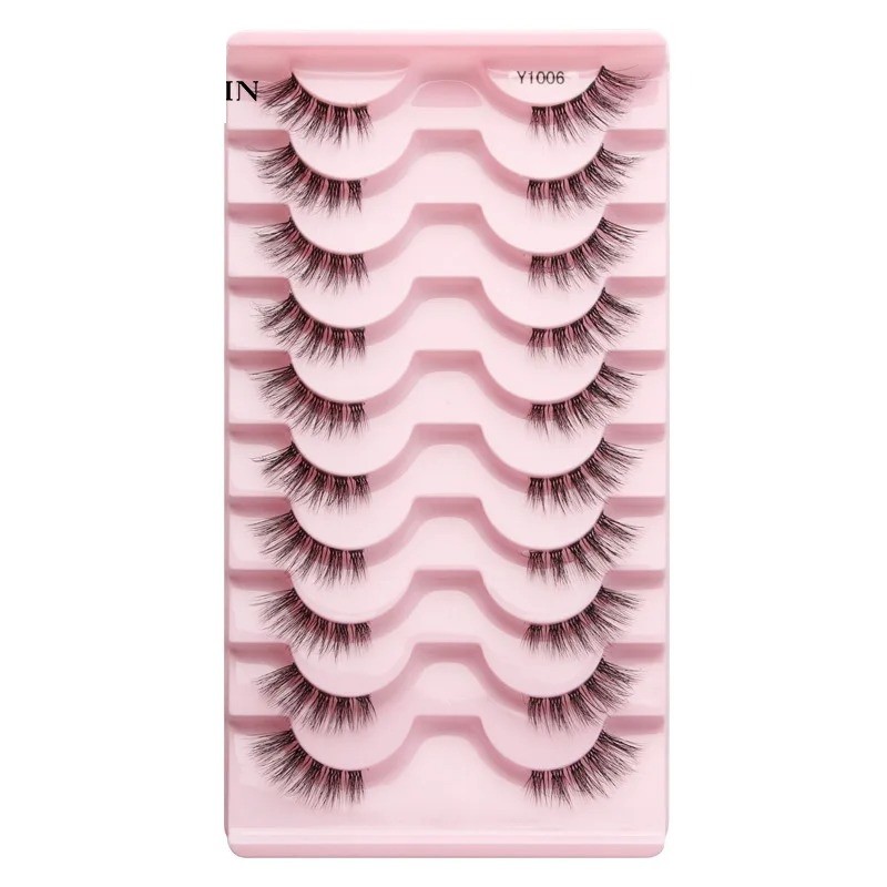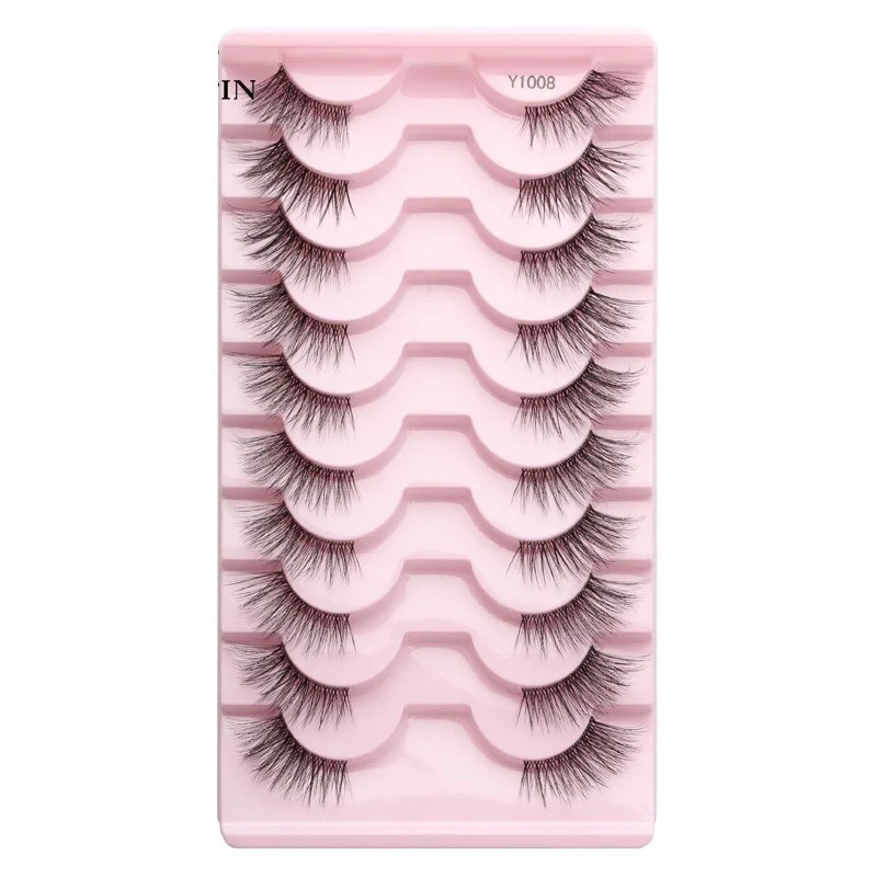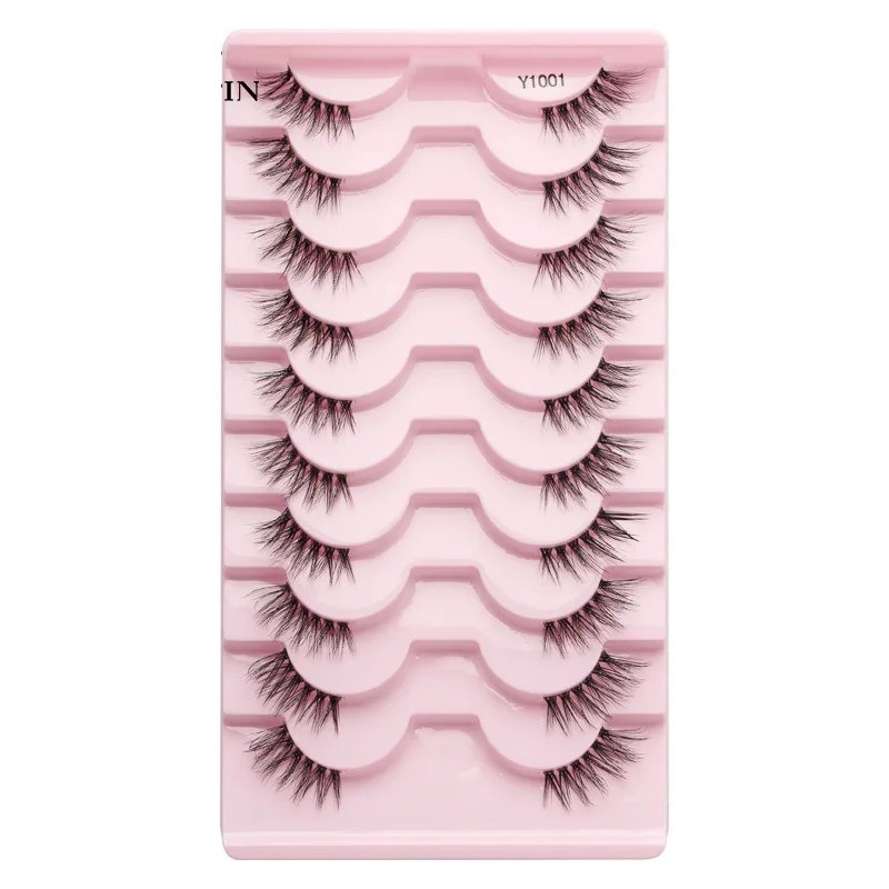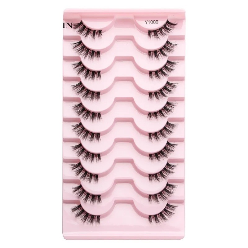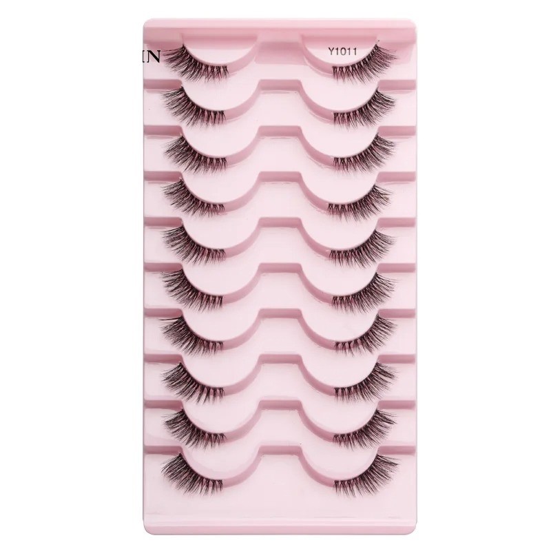 Set of 10 Pairs of Half Artificial Eyelashes Eyelash Extension Set Naturally Looking Adhesive Eyelashes