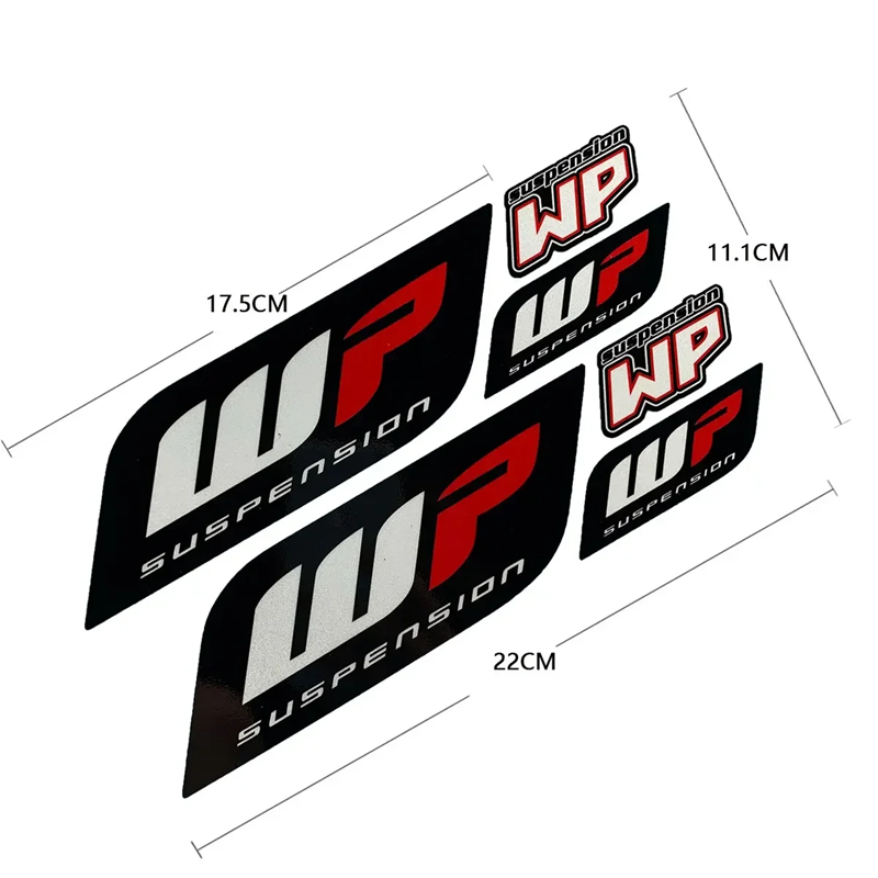 Stylish and durable WP Suspension stickers for motorcycle tuning – ideal for front forks, motocross, enduro, and road machines. Full description
