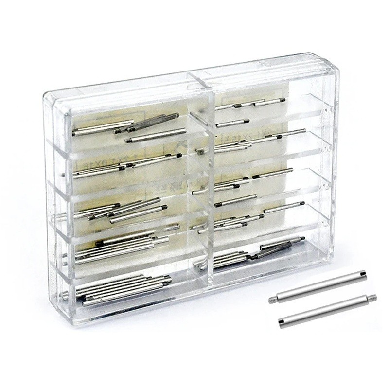 This extensive set is intended for watchmakers and home use. It provides a sufficient quantity of screw pins for multiple replacements and repairs. Includes 100 pieces of metal pins, 10 size variations, quality plastic box, and versatile use for watch repairs. An effective solution for anyone who works with watches regularly.