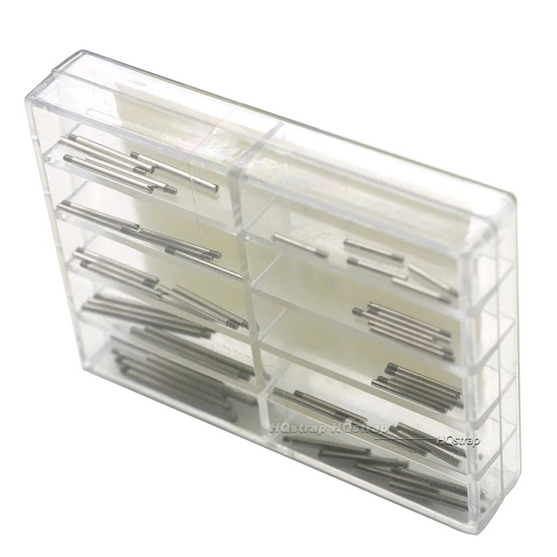 Home page Home page Hobbies & Garden Tools Hand Tools Watch Repair Tools Set of 100 Screw Pins for Watch Straps 10 Sizes in Plastic Box 8.6x6.4x1.6 cm