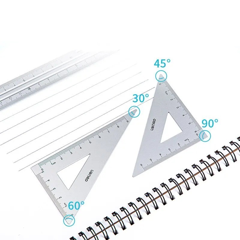 Introducing the multifunctional ruler set, an indispensable tool for engineers, artists, students, and anyone who requires precise measuring and drawing. This set includes a 15 cm ruler, a 180° protractor, and two triangular rulers, all made from durable aluminium alloy.