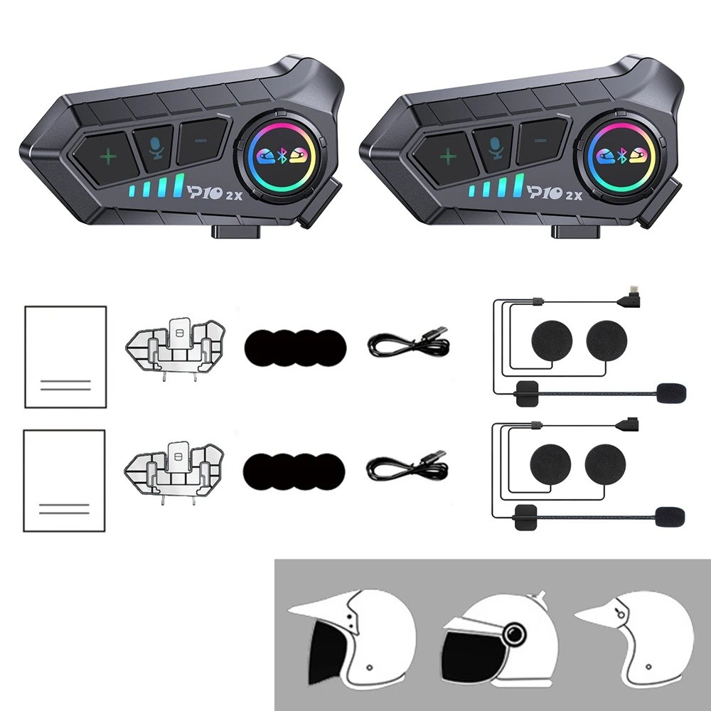 Home page Home page Auto & Moto Motorcycle Accessories Motorcycle Electronics Set of 2 Bluetooth Intercoms P10X with Fixed Microphones Battery Life 30 h Range 1000 m LED Indicator IPX6 Noise Cancellation for Two Open Helmets