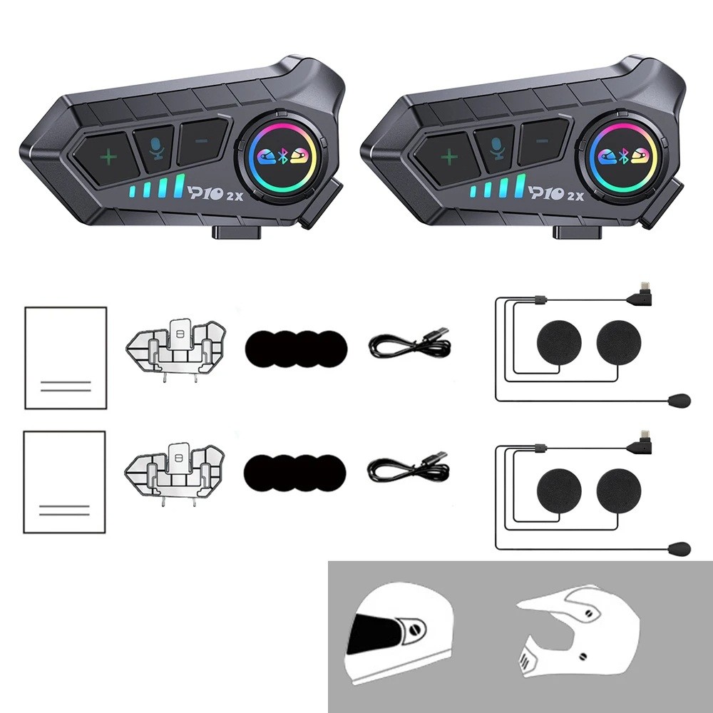 Home page Home page Auto & Moto Motorcycle Accessories Motorcycle Electronics Set of 2 Bluetooth Intercoms P10X with Soft Microphones Range 1000 m Battery Life 30 h LED Indicator IPX6 Noise Cancellation for Two Full-Face Helmets