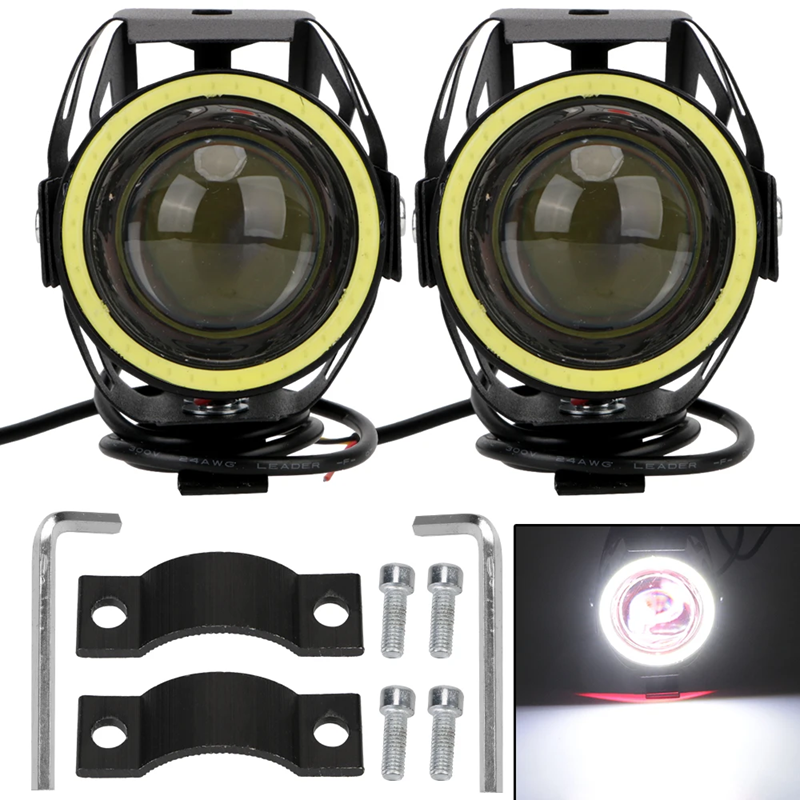 Set of 2 Motorcycle LED Headlights 125W Auxiliary Lights IP68 Waterproof 1200lm Strong Lighting Biker Accessories