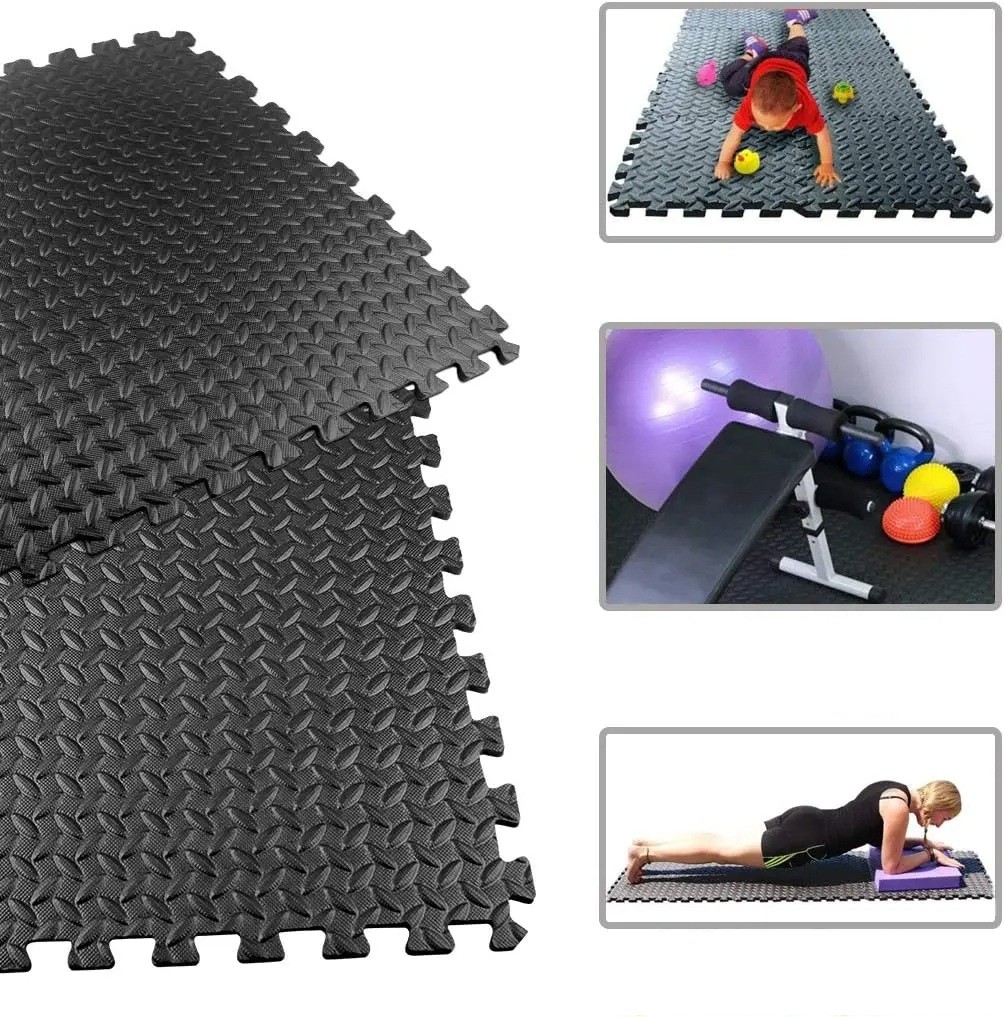 Set of 20 Black EVA Foam Puzzle Mats 30x30 cm Protective Foam Surface for Exercise, Fitness and Home Use