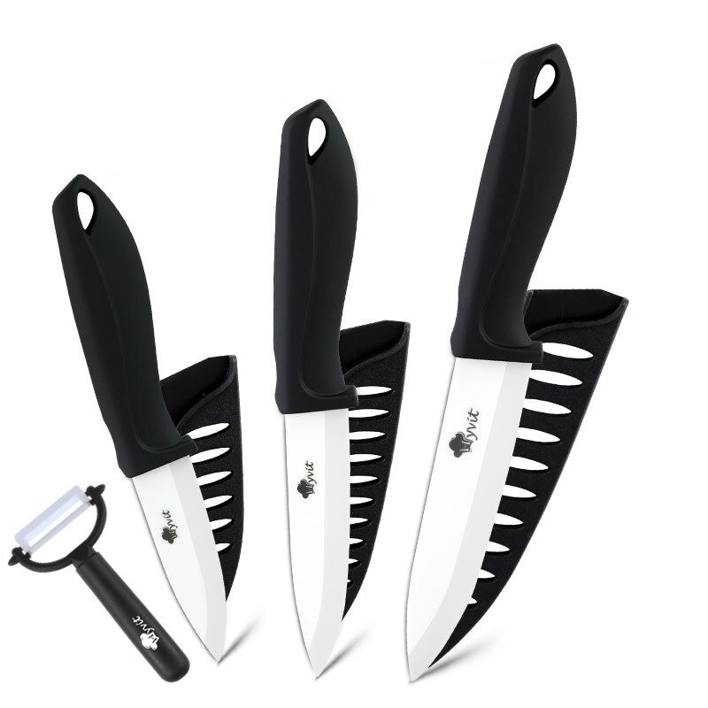 A set of kitchen knives that is suitable for any kitchen. The knives are made from ceramic. They are resistant to corrosion. They have excellent sharpness. Ideal for vegetables, fruits, fish and meat.
