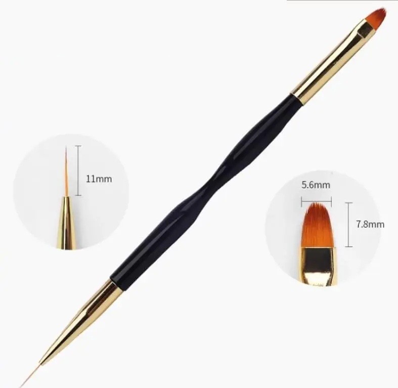 Double-ended professional brushes for precise nail decoration. Ideal for use with polish, gel, and acrylic, suitable for salon and home manicure. Full description
