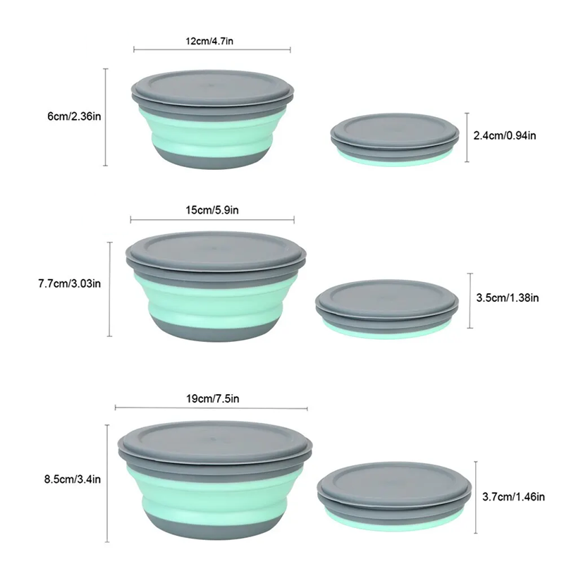 • Contents of the package: 3x silicone folding bowl with lid (various sizes)