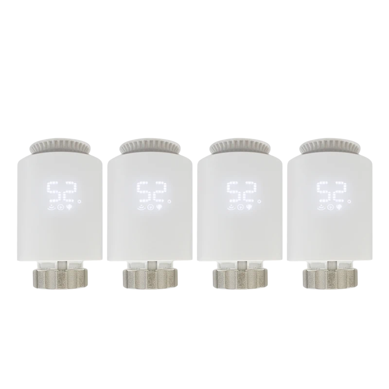 Smart radiator valves for multiple rooms with ZigBee support, voice control, and mobile app. Programmable weekly schedule. Full description