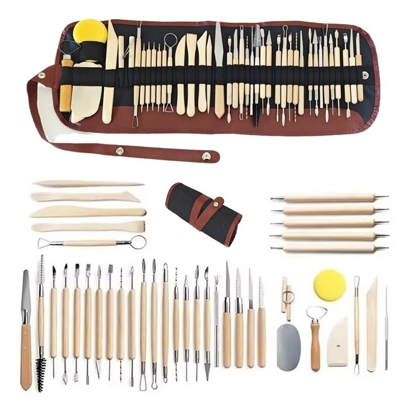 This extensive set of 41 sculpting and modelling tools is designed for both professional and hobby use when working with ceramics, clay, wax materials, and other modelling substances. It includes a wide selection of tools with various tips and shapes that allow for precise shaping, carving, scoring, smoothing, and decorating. The set is stored in a practical roll-up case that ensures organised storage and easy transport.