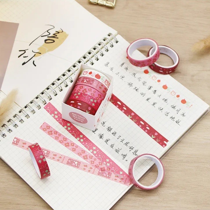 Home page Home page Home & Household Supplies Decorations & Home Accessories Gift Wrapping Gift Wraps & Ribbons Set of 5 Fruit-Themed Tapes Strawberry Garden 2 m for Decorating Diaries, Planners, Invitations and Other Creative Projects