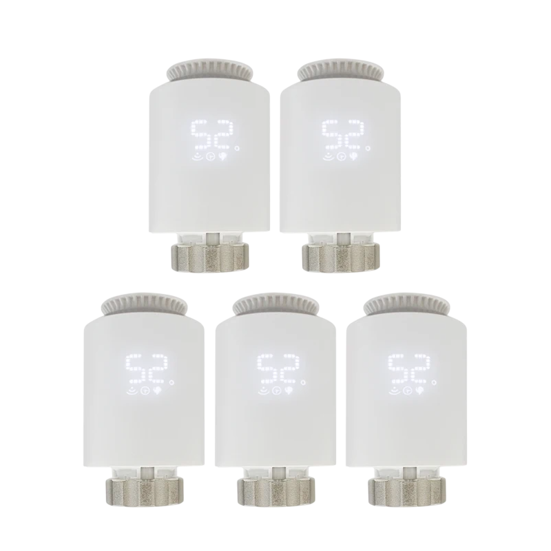 Five valves for intelligent heating control throughout the home. Voice control, group management, scheduling and integration with smart home systems. Full description