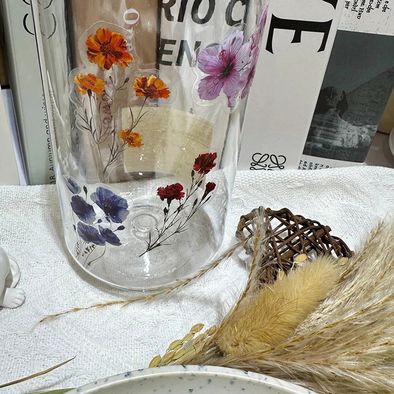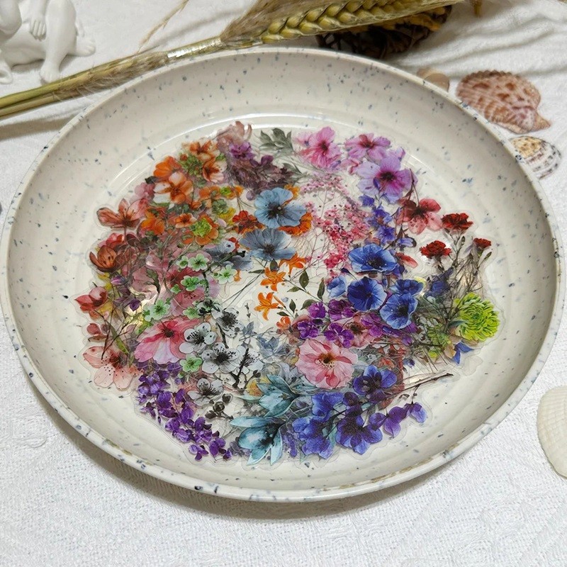 Set of 50 Transparent Flower Stickers Colourful Decorative Stickers for Journals Letters Photo Albums Notes Creative Decoration