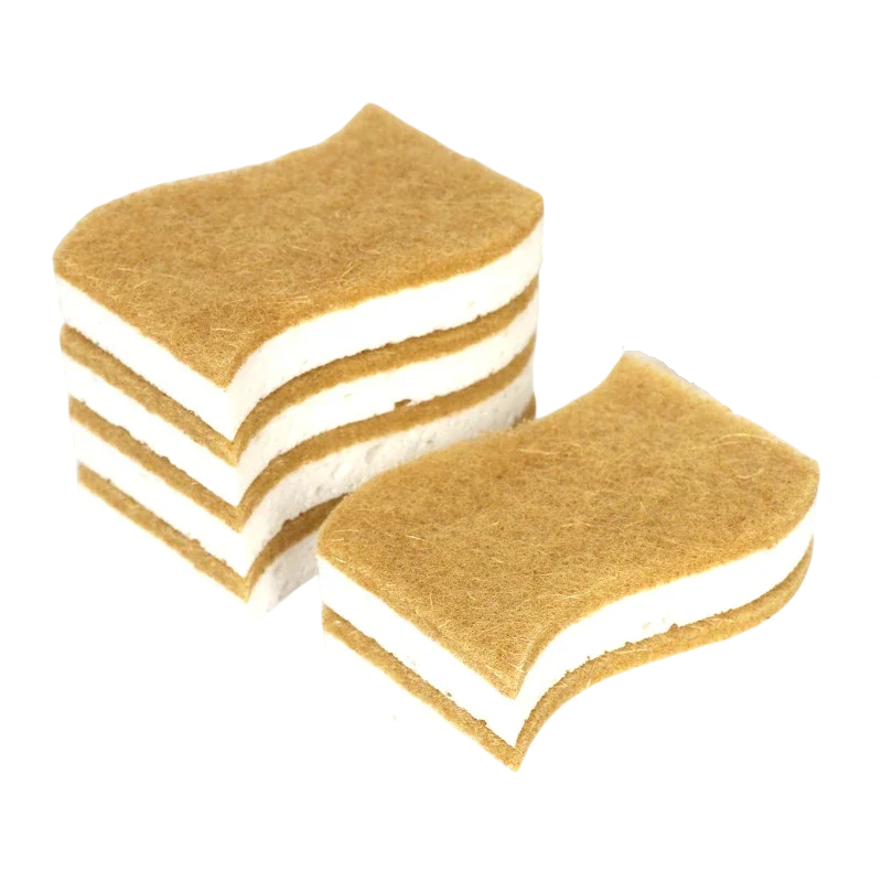 natural sisal, wood pulp, and microfibre allows for effective removal of grease and dried dirt. The natural cleaning layer is sturdy yet gentle on common surfaces. The pack contains