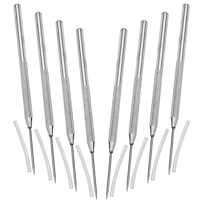 This professional set of eight metal sculpting tools is an essential kit for anyone involved in ceramics, working with clay, wax or other modelling materials. Each tool features a fine needle tip that allows for precise carving, detailed shaping and the creation of intricate decorative patterns. Their design makes them suitable for both fine detailing and heavier work.