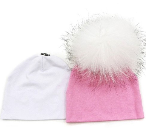 One hat features a pom-pom that can easily be transferred to the other hat.