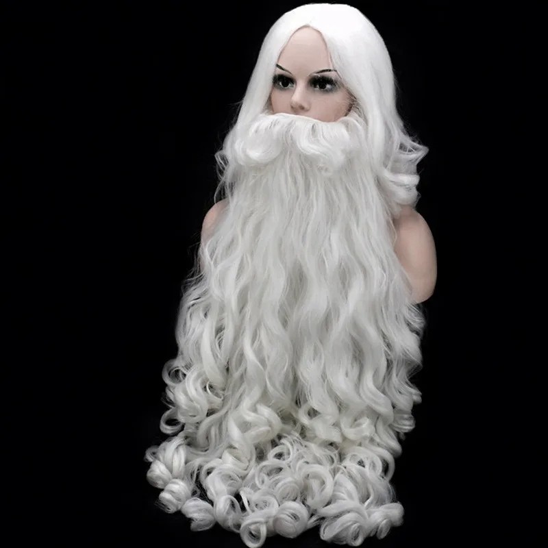Home page Home page Home & Household Supplies Decorations & Home Accessories Carnival Decorations & Accessories Carnival Masks & Costumes Set Wig and Fake Beard 60 cm Wig 40 cm White Synthetic Wig with Long Beard Costume Saint Nicholas Angel Carnival Theatre Prop