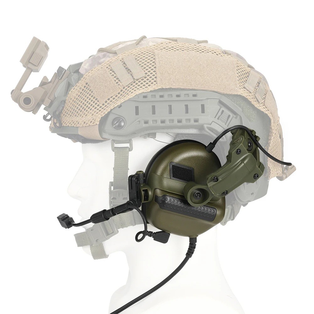 These tactical headphones with microphone are ideal for shooting training, military operations, airsoft, and professional use. The low-profile design allows for comfortable wear under a helmet without restricting movement or comfort. The durable construction ensures long life even with demanding use. The ability to connect to communication systems makes these protectors an ideal choice for teams that require clear and precise communication in noisy environments. Helmet is not included.