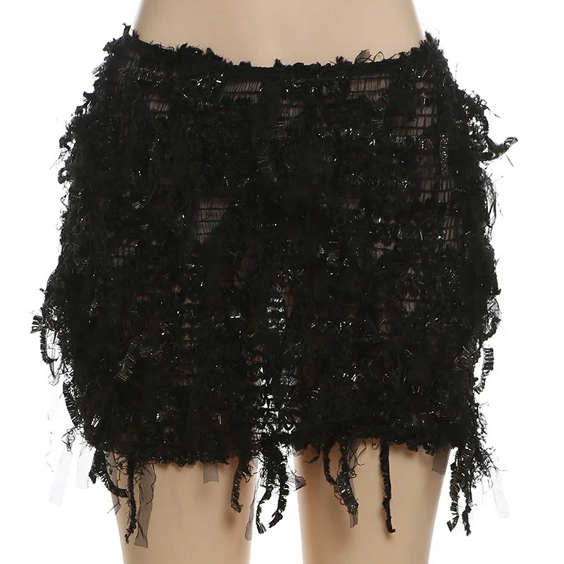 Home page Home page Clothing & Accessories Women’s Clothing Women’s Skirts Women’s Mini Skirts Short Transparent Knitted Skirt with Fringes Sexy Mini Skirt for Women Thin Fitted Skirt for Beach and Parties Summer Sheer Skirt