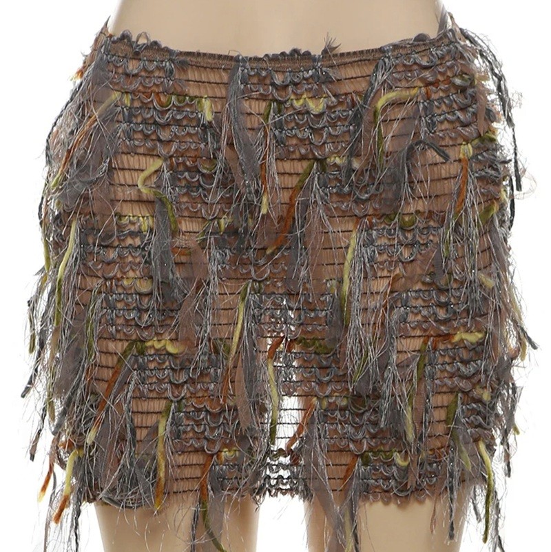 Short Transparent Knitted Skirt with Fringes Sexy Mini Skirt for Women Thin Fitted Skirt for Beach and Parties Summer Sheer Skirt
