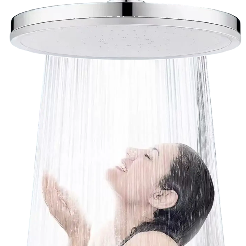 This round ceiling shower head with a diameter of 230 mm delivers a luxurious shower experience thanks to six different water flow modes. The high-pressure design ensures a strong and even flow that thoroughly rinses you even at lower water pressure. The rotatable construction allows you to adjust the direction of the flow according to your needs, while the top G 1/2 mounting (2 cm standard interface) ensures easy and secure installation on the ceiling. The shower head is an ideal choice for anyone looking to bring a higher level of comfort and functionality to their bathroom. Its wide range of settings allows for a transition from gentle misting to an intense massage spray.
