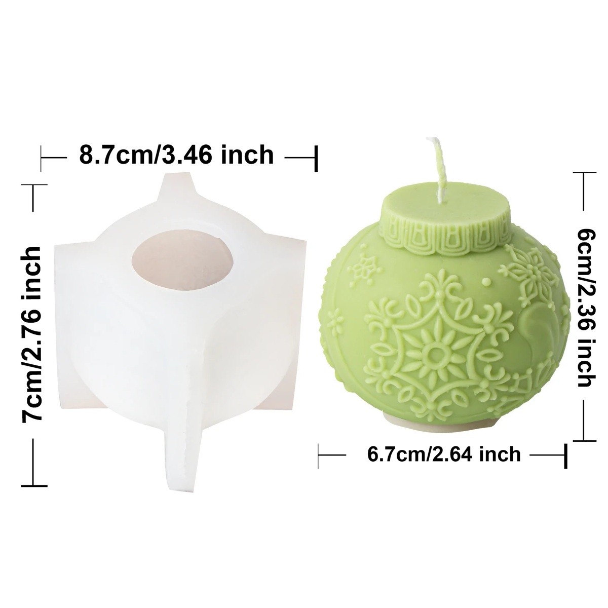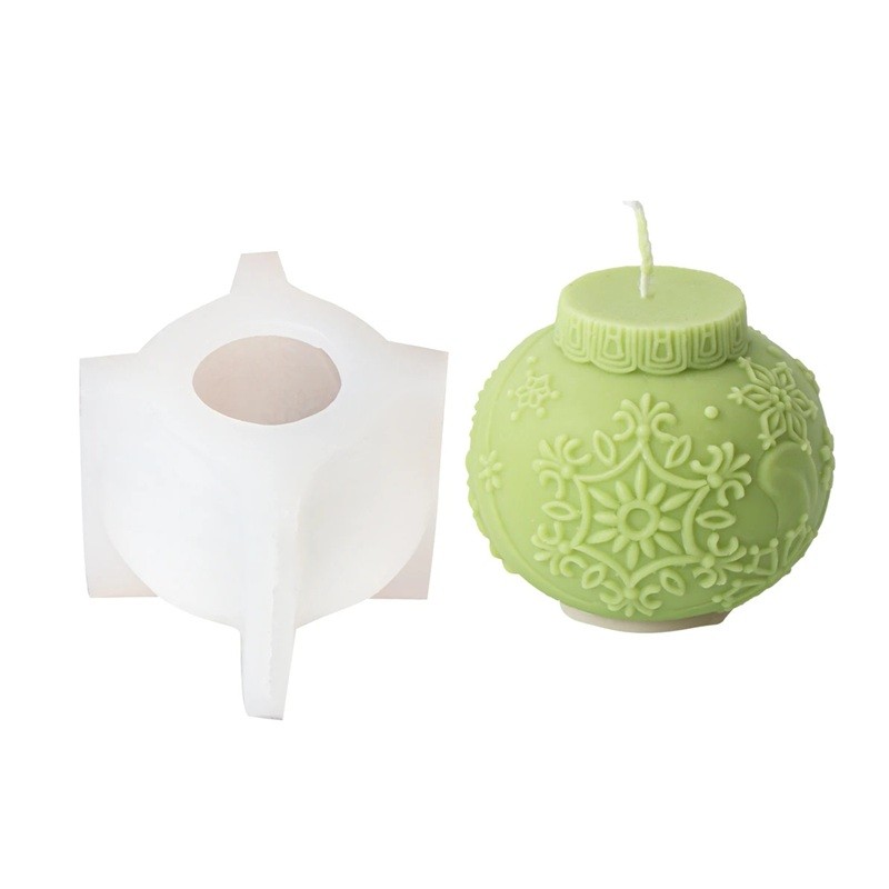 Silicone Candle Mould 8.7 x 7 cm Christmas Bauble with Floral Pattern Wax Resin Soap Decoration Mould