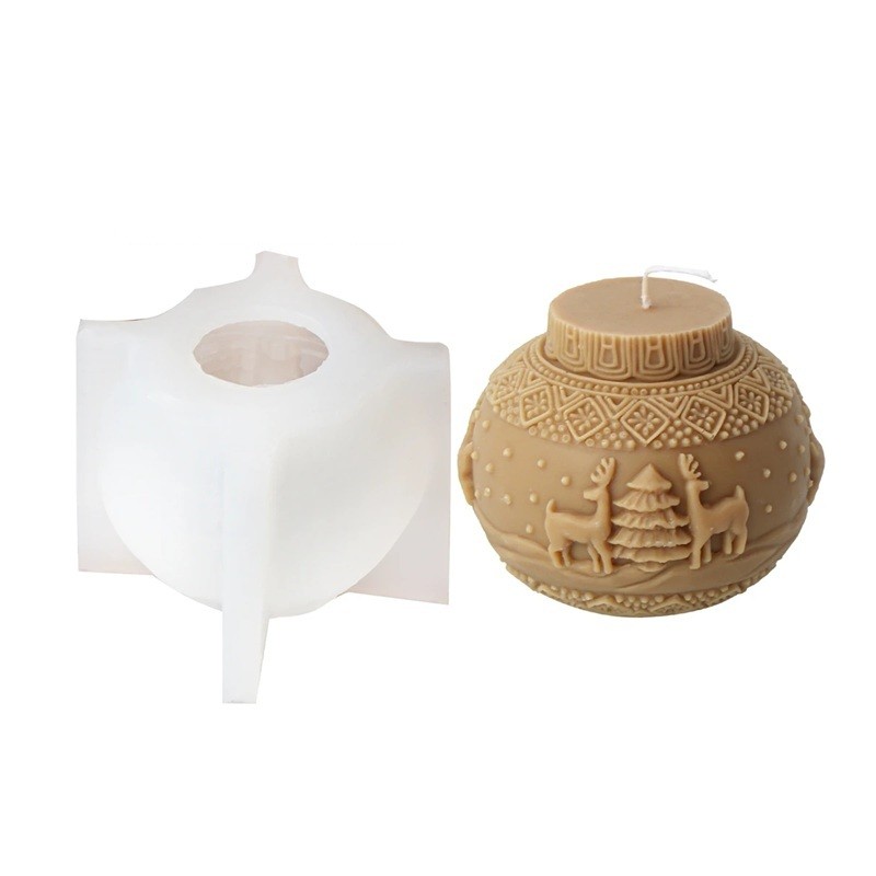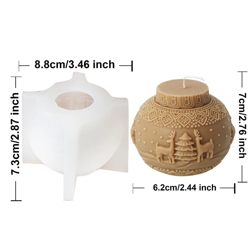 Silicone Candle Mould 8.8 x 7.3 cm Christmas Bauble with Reindeer and Tree Wax Resin Soap Decoration Mould