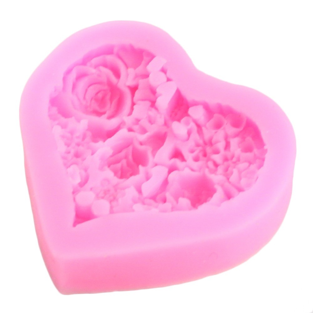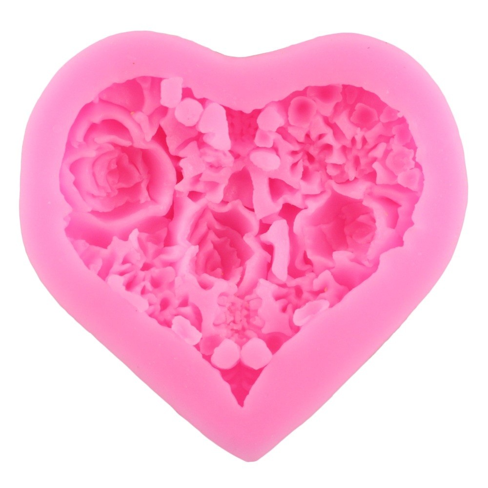 Silicone Heart Mould with Flowers