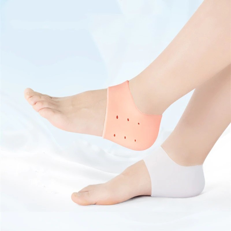 The silicone heel protector absorbs shocks upon impact, reducing pressure and pain on the heels. It can be used after applying cream for better absorption. The protector is made from soft and high-quality silicone.