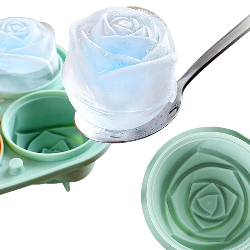 Silicone Ice Cube Tray 13.5×7 cm Pink Flower 4 Grids Baking Mould for Cookies Chocolate Christmas Decoration Kitchen Utensil