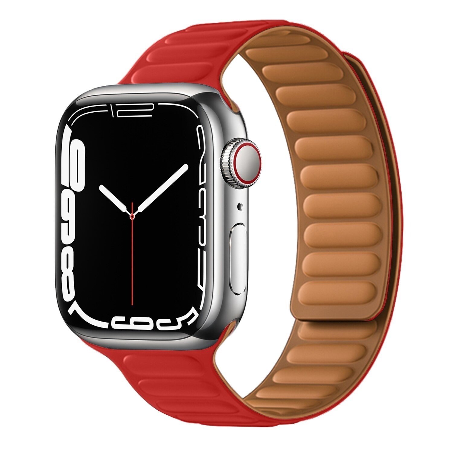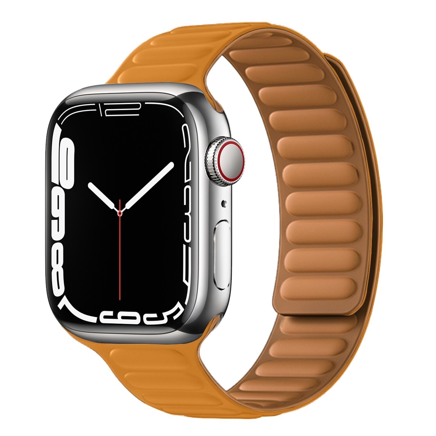 Silicone accessory for Apple Watch! Allows for secure and comfortable wearing. This strap is made from silicone. The fastening works on a magnet. It is suitable for everyday wear. Enhance your style with this strap for Apple Watch!