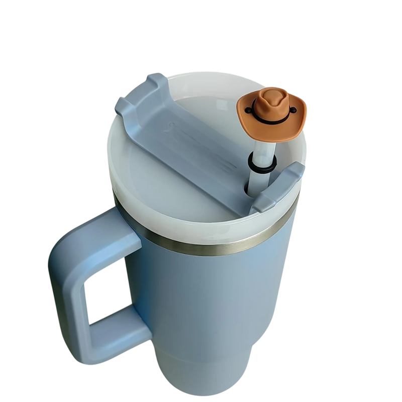 Set of 4 silicone straw covers in the shape of a cowboy hat protects your drink from dirt. A stylish accessory for the Stanley Cup, easy to clean and reusable. Full description