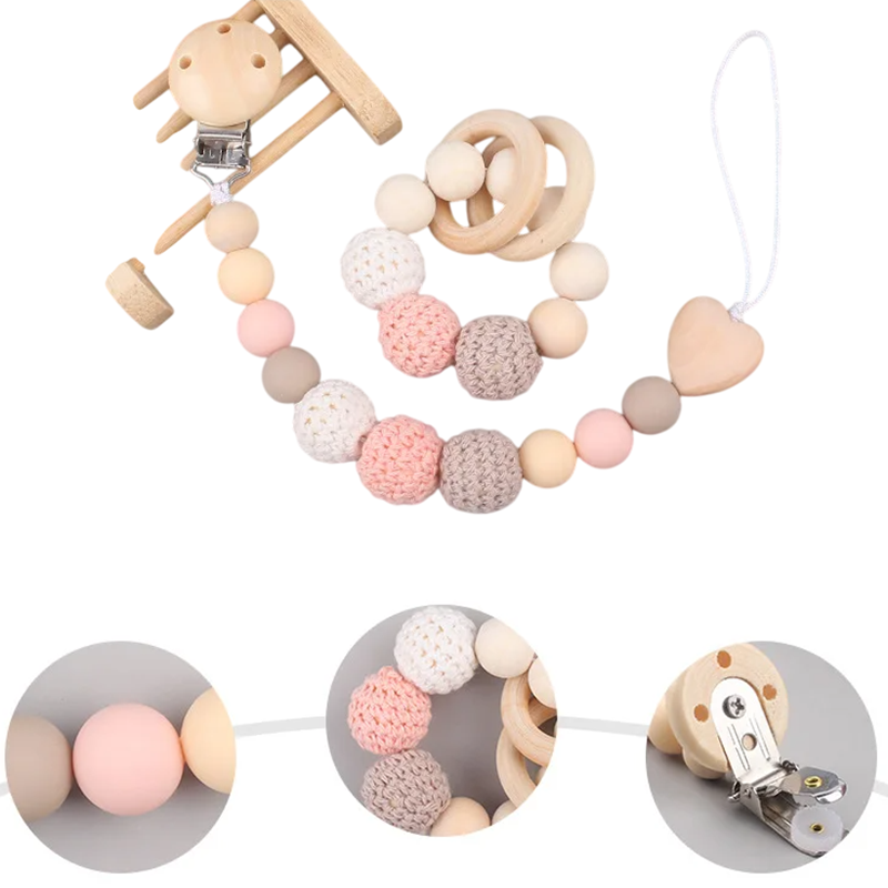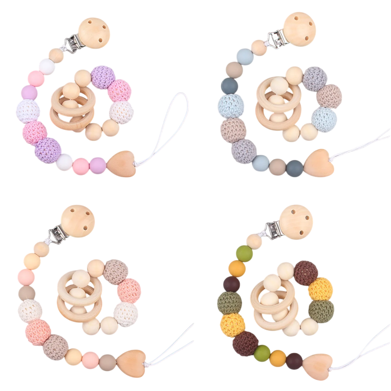 Home page Home page Everything for Kids Accessories for Mums Baby Essentials Other Baby Essentials Silicone Teether with Pacifier Clip Wooden and Silicone Beads Toy for Babies 0–36 Months Soothing Bracelet and Teether