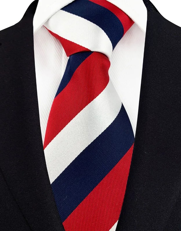 Silk Tie with Blue, Red and White Stripes 145 x 8 cm Luxury Men's Suit Tie Elegant Social Tie Formal Accessory